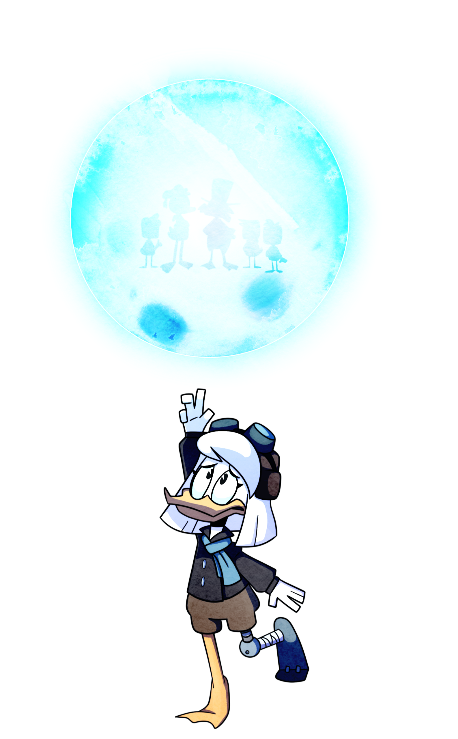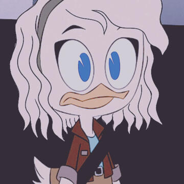 Della Duck is the twin sister to Donald Duck and niece to Scrooge McDuck. Her parents are Hortense McDuck and Quackmore Duck, though she and Donald were raised by Scrooge. Growing up, Della was always the adventurous type, spending all her time outdoors and trying to solve mysteries. She has a close relationship with her brother and is known to take it personally if he blows her off for any reason. Della is incredibly smart and witty, often able to talk herself out of trouble should she find herself in a sticky situation. Her adventures with her family took her just about everywhere all around the world, though she did spend some time living off the coast of Greece on an island called Ithaquack. There, she befriended the moon goddess Selene (who she later dated). After a few years, she continued her adventures and moved back to Duckburg.When she was about twenty five years old, she found out she was having triplets. The eggs were laid and Della tried to come up with a good gift for her boys. After having been just about everywhere with her uncle and brother, her sights were set on the stars. She always dreamed of going to space and exploring the vast unknown, but Donald was against it. With the triplets on the way, it was too dangerous! But nothing could stop Della Duck! She discovered that Scrooge had built the rocket she designed and curiosity got the better of her. She took it. It was only meant to be a trip around the Earth, a quick test to see that the rocket worked. But then a cosmic storm hit and despite Scrooge’s best efforts, she was struck by lightning and crash landed on the moon. She lost all contact with her uncle and was stuck with a broken rocket.Her helmet destroyed, Della would have died if not for the oxychew that Gyro Gearloose had invented. It provided food, water and oxygen, giving her a chance to survive. When she woke up after the crash, her leg was pinned under a piece of debris. In order to avoid being crushed by the rest of the rocket, Della was forced to amputate her leg. She built a prosthetic to wear and try to find a way home. After a year of being on the moon, she realized that if she wanted to get home, she’d have to do it herself. So she got to work. She discovered that she needed gold to power the rocket and eventually found a gold filling in her mouth, but not before her rebuilt rocket was destroyed by a moon mite. From there, Della discovered the moonlanders, and their city of gold, allowing her to rebuild her rocket.Her departure from the moon was abrupt, as the emergency button had been pressed. Della was upset that she wasn’t able to fulfill the promise she made to the moonlanders who had been kind enough to help her and bring them to Earth. She did leave behind her operation manual so they could follow, unaware that Lunaris was planning an invasion. Finally, Della returned home. She was reunited with Uncle Scrooge and got to meet her sons at last. Dewey was the first to rush into her arms, followed by Huey and then Louie, after reassuring him that there was indeed no trick and she was really there. Della’s need to make up for everything she missed sent her into a frenzy, baking several desserts, telling a story that was probably too scary for bedtime and teaching them to shield surf off the balcony. It was overwhelming and Della feared that maybe things were better when she was gone. However, the family came together and Della learned she was going to have to take things slow while acclimating back on Earth and into her sons’ lives.As a mother, Della can be very laid back, often encouraging her boys to do whatever they wanted as long as they were safe. This attitude toward motherhood came to be a problem and she struggled to do things differently, especially when Louie nearly erased everyone from existence. When she punished him, it was thrown back in her face that she’d done just what he did. Della realized just how broken her family was because of her mistake and she knows she can’t take it back, but she wants to make up for it. She was here now and all she could do was try her best to rebuild the trust she’d broken with her family and make a new life with them.